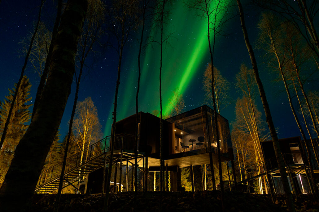 The mirrored exteriors reflect the changing light and surrounding nature, making each cabin feel quietly hidden – yet deeply connected to the landscape.